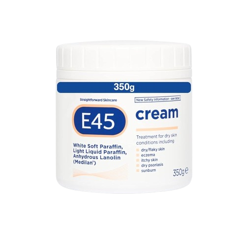 E45 Cream Tub provides long-lasting moisture and relief for dry, flaky, and sensitive skin. Suitable for daily use by the whole family.