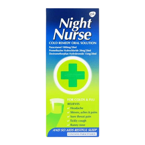 Night Nurse is a fast-acting medicine that relieves cold and flu symptoms like cough, headache, fever, and nasal congestion, helping you rest and recover overnight.